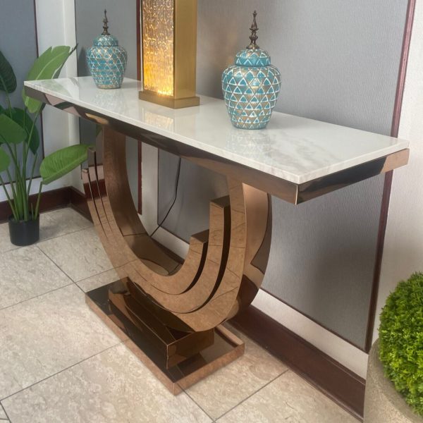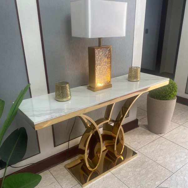 El Arrimo Atenea es una obra de arte lujosa y única. Su diseño contemporáneo crea una hermosa pieza que será la envidia de todos los que la vean. Está compuesta por una cubierta de mármol en colores blanco y su base es dorada electropintada, este arrimo sacara más de una sonrisa a sus invitados.