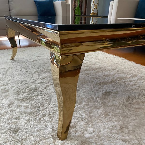 La Mesa de Centro Cosmo Gold, es una mesa de lujo, posee un estilo clásico ingles, cuenta con una cubierta de mármol y una base metálica con sutiles curvas que entregara un aspecto hermoso e inigualable, de estructura fuerte y robusta garantizara años de uso.