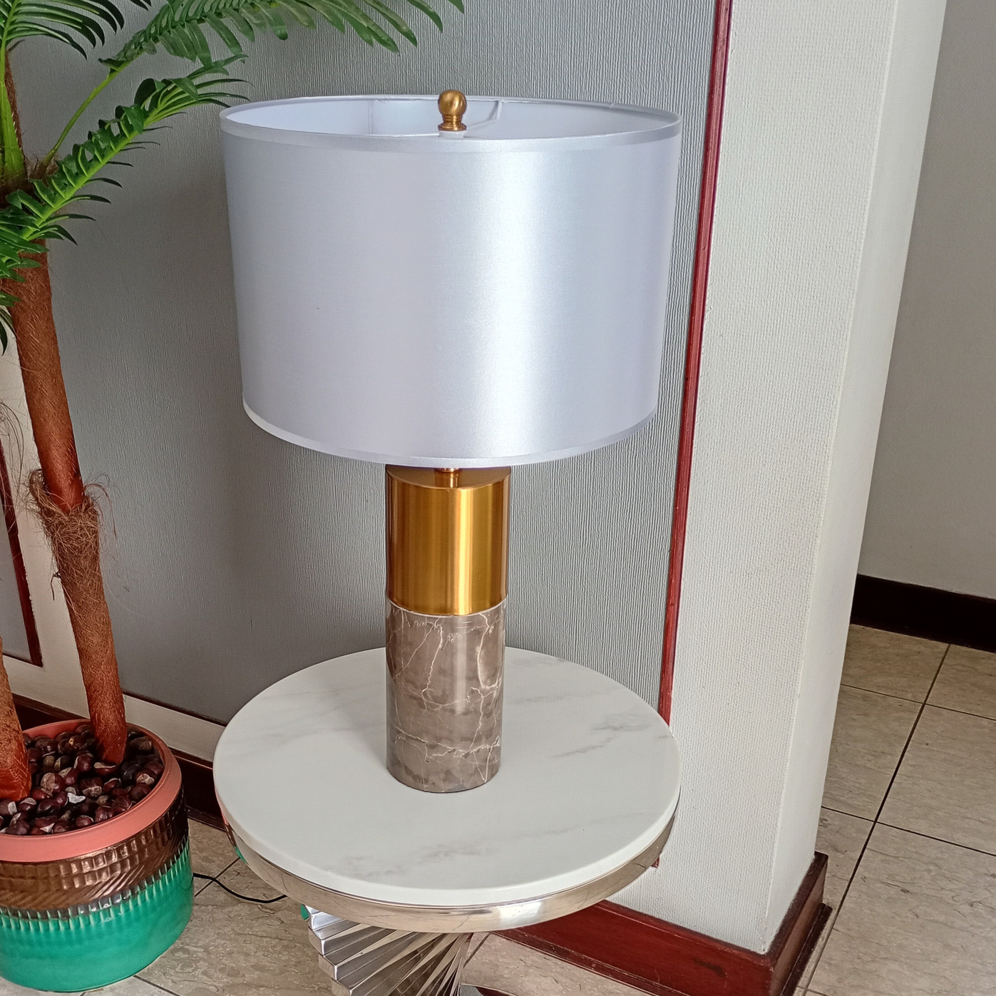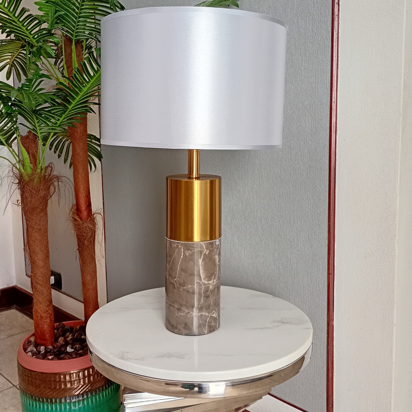 Pero lo que realmente distingue a la Lámpara de Mesa Júpiter Gris es su capacidad para transformar cualquier espacio. Ya sea en un salón elegante, en un estudio moderno o en una suite de hotel de lujo, esta lámpara se convierte en el punto focal, atrayendo miradas y generando conversaciones. Es una pieza que no solo ilumina, sino que también inspira.