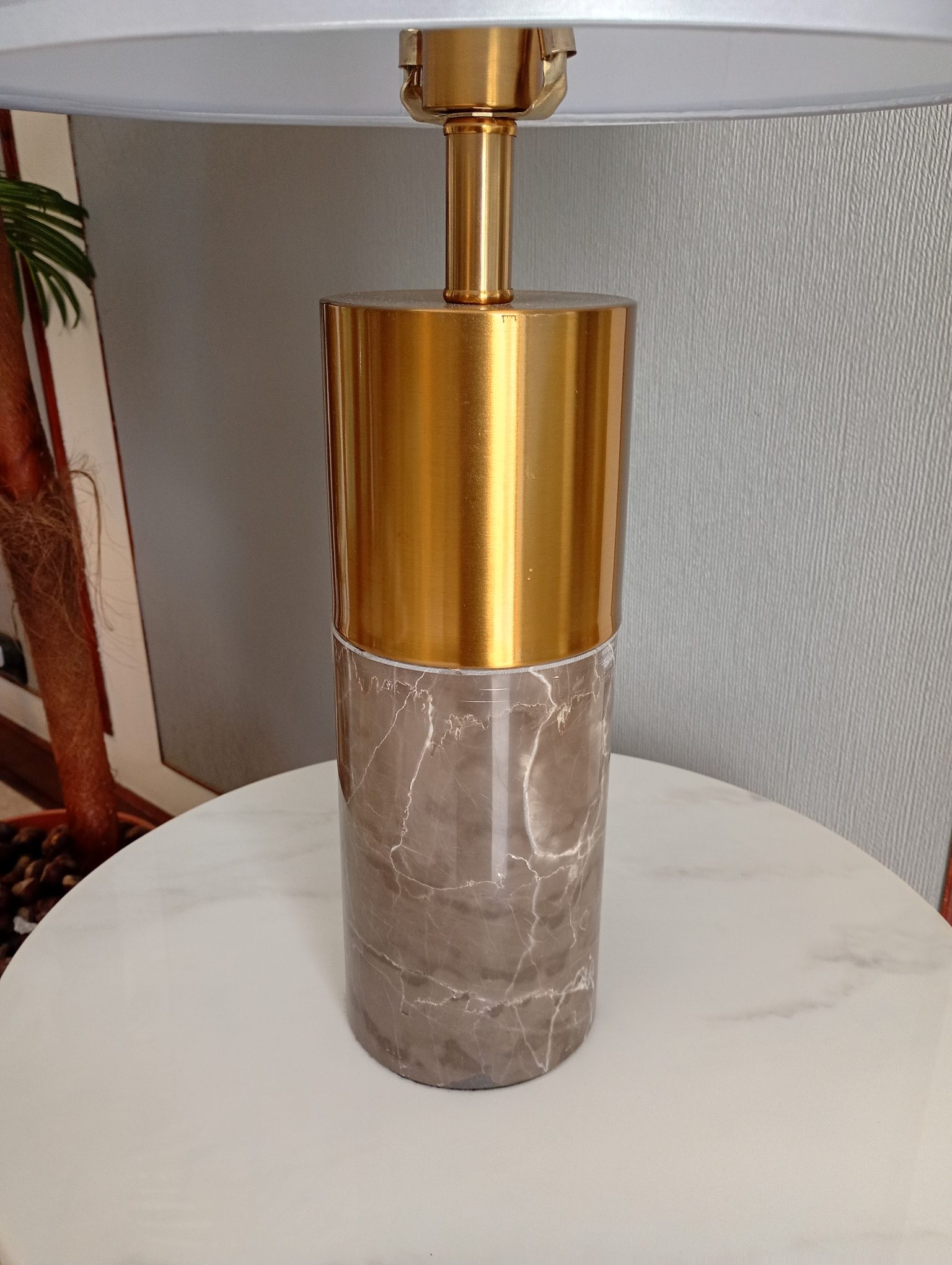 Desde el primer vistazo, es evidente que esta lámpara no es una adición ordinaria a tu espacio. Su base de mármol, con sus vetas naturales y su tono gris sutil, evoca la majestuosidad de las montañas y la serenidad de un paisaje invernal. Es un recordatorio de la belleza eterna de la naturaleza, capturada y esculpida en una forma que es tanto funcional como artística.